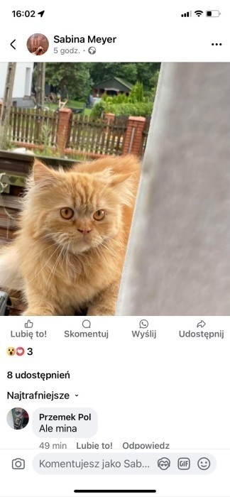 Zyzio jest rudym .puszystym persem. Koncowka ogona jest biala. Jest bardzo nieufny.Bardzo.bardzo prosze o pomoc w znalezieniu