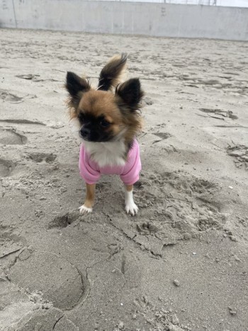 Rudo- beżowa z biało- czarnymi plamkami, długi włos