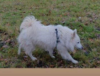 Pies w typie rasy szpic, mniej więcej do kolana. Sierść długowłosa, koloru białego. Przyjazny, lubi ludzi, reaguje na imię Songo.