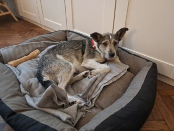 Dwuletnia suka ze schroniska koło Nowego Sącza. Po przejściach z poprzednim właścicielem bardzo płochliwa na dźwięki i sytuacje. Po porodzie (3 miesiące temu), po zabiegu sterylizacji. Zaszczepiona na wściekliznę i zaczipowana.