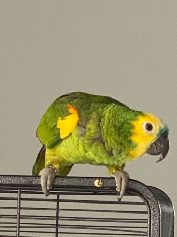 Zielony kolor piór na czubku ma kolor niebiesko-żółty