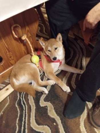 Rudy piesek Hachiko, Shiba Inu 1rok. Wyślizgnął się z czerwonej obroży.