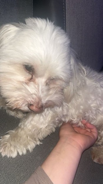 Biało kremowy hawańczyk .12 lat. Brak ząbka w dolnej szczęce. Słabo owłosiony ogonek.
