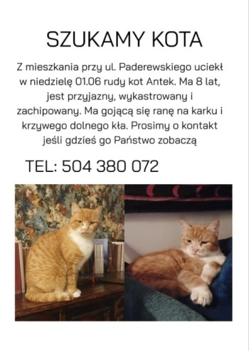 Kot ma gojącą się ranę na karku, proszę o kontakt jeśli ktoś go zobaczy