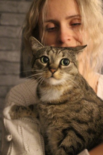 Kotek jest dachowcem, w pręgi. Jest wysytaszony bo jest niewychodzący i wysterylizowany.