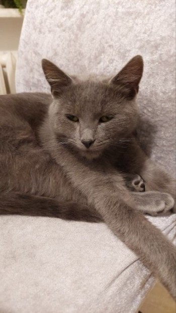rosyjski niebieski ,szary kot ma około 2 lata