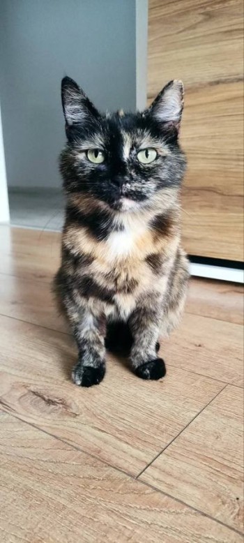 Kotka około 3,5kg, umaszczenie szylkret (czarno-rude). Aktualnie nie posiada obroży. Dla znalazcy przewidziana nagroda