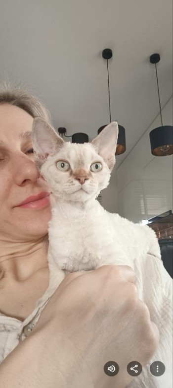 Devon Rex, 10 miesięczny kot, wykastrowany. białe umaszczenie.