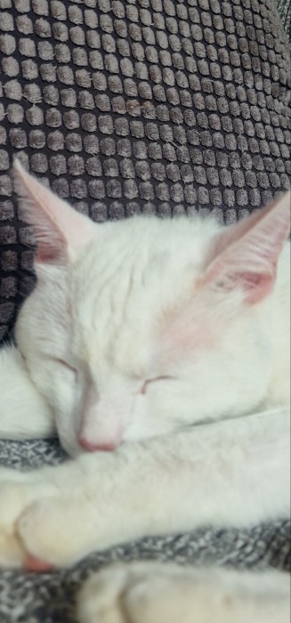 biala kotka lubiącą kontakt z ludźmi bardzo ufna