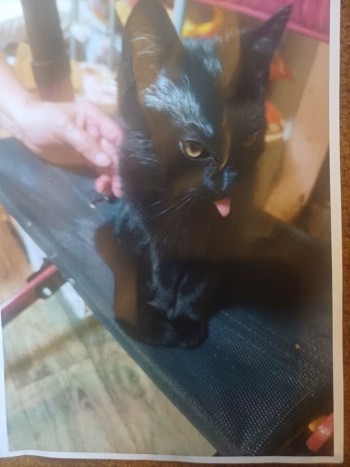 6 miesieczna czarna kotka w dniu zaginięcia miała na szyi niebieską odblaskową opaskę