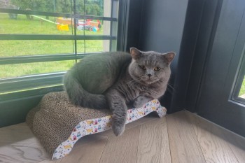Kot brytyjski krótkowłosy, dość niski jak na brytyjczyka. Bursztynowe oczy. Ogon skrzywiony na prawą stronę.