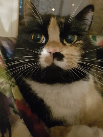 Dwuletnia szylkretowa kotka. Ma pyszczek skrócony podobny do persa albo brytyjczyka.Gruby puszysty ogon