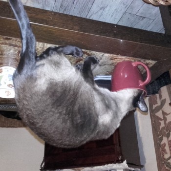 GRYPS-13 letni kocurek Syjamski. Mały maruda o bardzo jasnych oczach. Niebieska obroża.