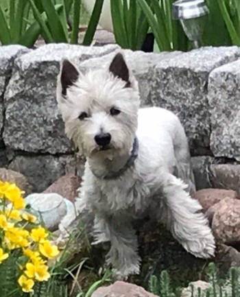 Nadal szukam psa białego Westa ostrzyżonego na krótko, który 24.08.2020 wykorzystując lukę podczas remontu ogrodzenia wyszedł lub został wywabiony z posesji w Łodzi przy ul. Częstochowskiej 75 (okolice Carrefour Przybyszewskiego na Zarzewie - Milionowa) M