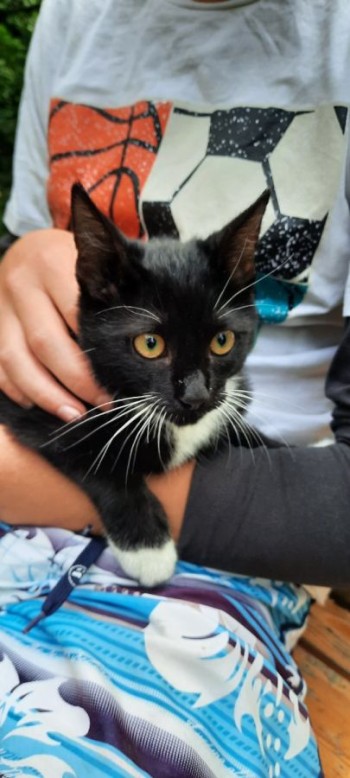kociak młody, ok. półroczny, oswojony, garnie się do ludzi, nie ucieka.