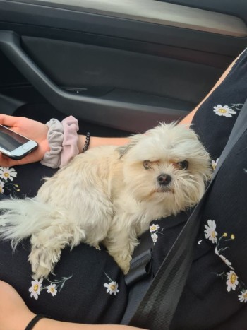 Mały, biały, czerwona obróżka