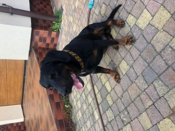 21.08.2021 w lesie w Dolinie Baryczy (powiat Milicz) koło miejscowości Gruszeczka znalazłem psa myśliwskiego. Jest to młody, piękny samiec Gończy Słowacki. Zaopiekowałem się nim. Poszukuje właściciela.