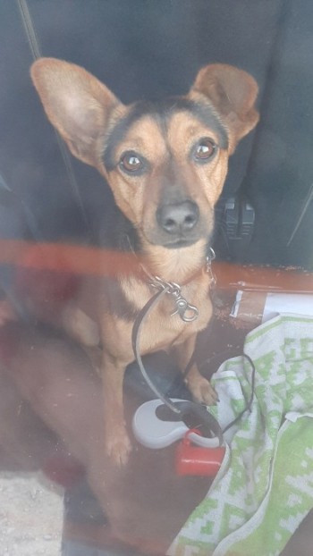 Pies czarny - podpalany z pomarańczowym.Wysokość do połowy mojej łydki.Ma na szyi założony stary pasek z odłącząnym (nie urwanym haczykiem ).Wiek stwierdzony przez weterynarza ok 2-3 lat.Bardzo spokojny.Przyjacielski i mądry.Po zachowaniu wydaje mi się, że był związany z człowiekiem.Nie lubi samców.Ma długi ogon i uszy stojące.Budowa ciała - szczupła , zgrabna sylwetka.