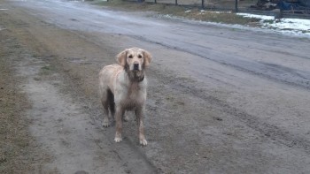 Pies jest przyjazny.ma na sobie czarna obroże elektryczną