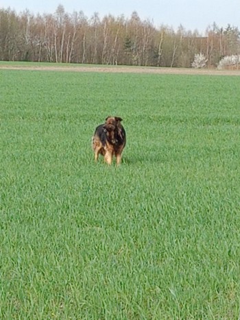 Samiec , mieszanka owczarka, uszy klapnięte, nie ma obroży