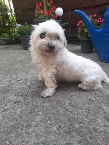 Witam, znalazłam pieska na ulicy Aleja Wojska Polskiego w Pułtusku. Biegał po ulicy i prawie potrącił go samochód, wysiadłam i zabrałam go do domu.