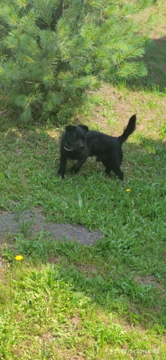 Czarny mały piesek. Na oko około 7 lat. Płochliwy do ludzi, przyjazny względem innych psów. Wracając ze spaceru był w tym samym miejscu, więc pewnie należy do kogoś z okolicznych domów.