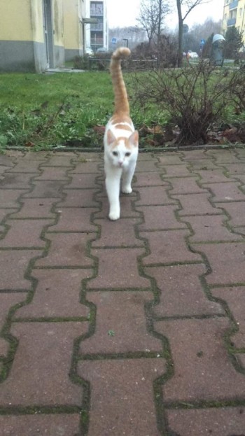 Znaleziony kotek, na ul. Pileckiego, obecnie przebywa koło placu zabaw .