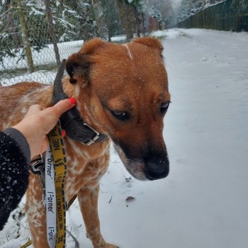 Sunia ma czarna szeroka obrozę. Maść ruda w białe centki. Jest wieszańcem z psem gończym (polowania). Najprawdopodobniej musiała się wystraszyć i uciec, może z polowania. Została znaleziona na wysokości Bud Dłutowskich w powiecie pabianickim. Była bardzo zdezorientowana, biegała po drodze, niewiele brakowało a potraciłoby ją auto. Jest posłuszna, grzeczna, ale piszczy.