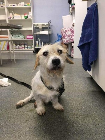 Młody psiak przyniesiony do weterynarza. Jest zabezpieczony. Pilnie szukamy właściciela
