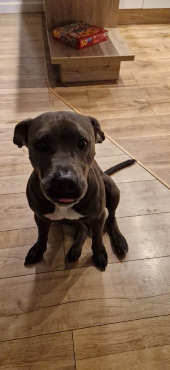 Suczka umaszczenia blue (szarobkekitna) bardzo przyjazna, zadbana, zna komendy.
