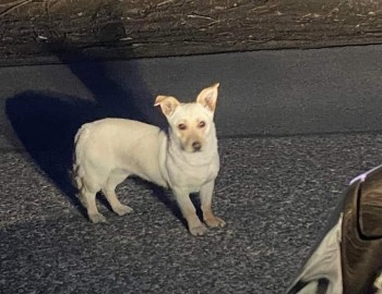 rude uszy, cały bialy, przyjazny, wsytraszony