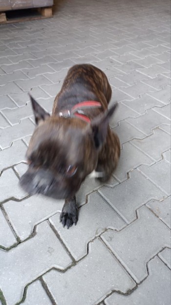 jobcięty ogonek, czerwona obroża, miły dla obcych.