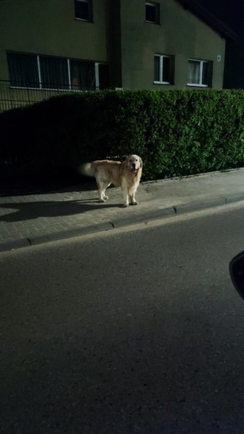 Golden ma około parę lat. wygląda na pańskiego, trochę rozszczochany, ale wygląda na zadbanego. Mamy psiaka na pace i nie możemy go zabrać, plus zwiał nam z pola widzenia. Ostatnio widziany w okolicy Delikatesów Cukierni Janca w Kiełpinie.