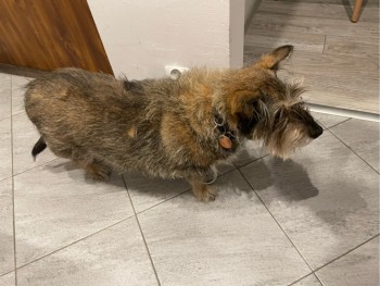 Starszy piesek, ma zaćmę na oczach
