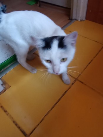 Czarny ogonek, czarna dzielona grzywka, w większości biala. Chyba kotka.