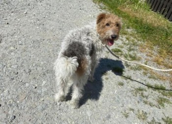 Foxterrier, trikolor, 7-letnia. Znaleziono w miejscowości Wysoka, os. Zagrody ( woj. Małopolskie )