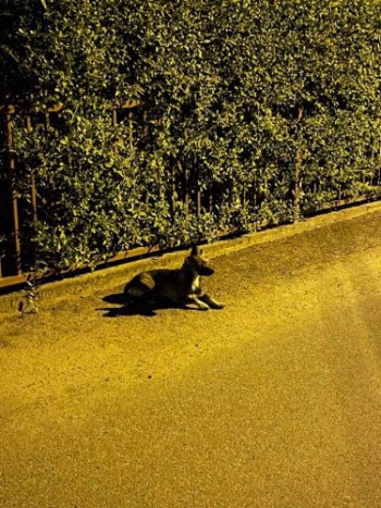 Piesek leży przy płocie niedaleko parku w Psarach, niestety nie udało nam się go zabezpieczyć ponieważ nie pozwala się dotknąć, cały czas wraca w to samo miejsce i nasłuchuje każdy dźwięk jakby na kogoś czekał. Niestety nie ma na sobie żadnej obroży, jest dość płochliwy