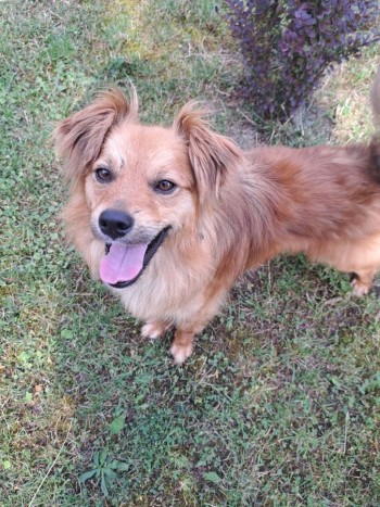 Nieduży, przed kolano, wesoły i lgnie do ludzi