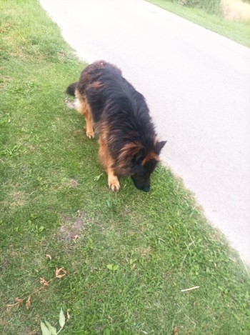 owczarek niemiecki pies czarny podpalany z obrożą