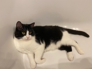 Czarno biały kot o spokojnym charakterze powrócił do domu po 4 tygodniach poszukiwań w Gorcach. Jest szczuplejszy o 1,5 kg ale zadowolony z powrotu do swojej Pani.