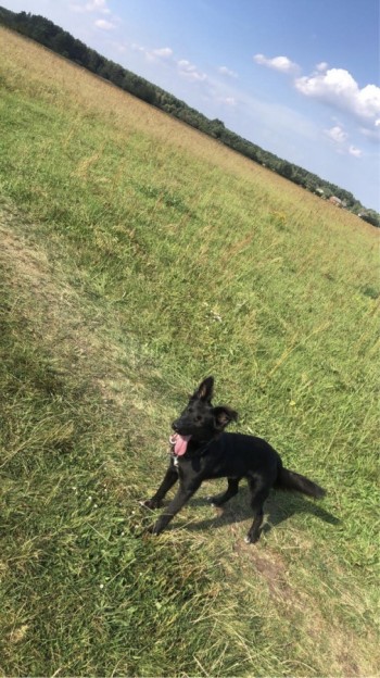 wysokosc do kolana czarna siersc biala plama na klatce uszy sterczące nie agresywny i tez nie ufnyzaginął w okolicy wsi sudzin woj łódzkie