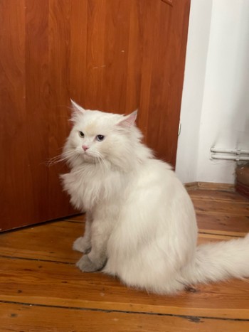 Biały kot, wyglada na rasowego, wazy około 10kg, długowłosy, bez obroży, nie wiem czy samica czy samiec