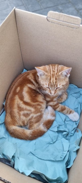 Rudy, młody Kocurek z pręgowanym umaszczeniem.
