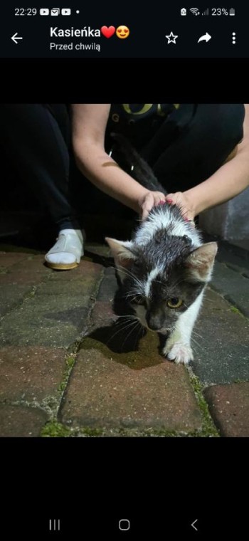 mlody kot z smyczką z napisem kitycat i dzwonkiem