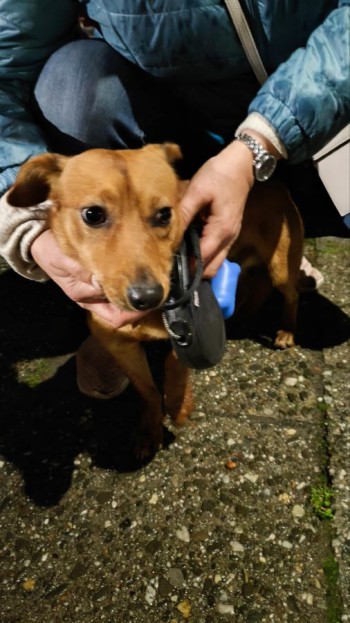 Rudy, niski (ok. 30-40cm), przyjazny, lgnie do ludzi