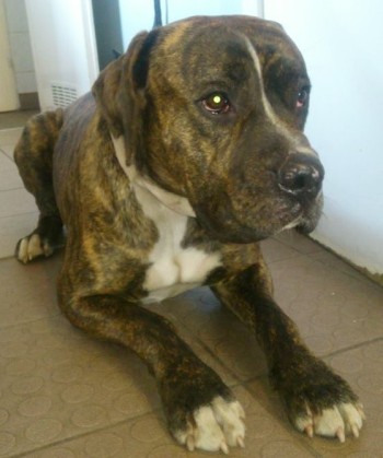 Duży brązowo-pręgowany, łagodny, biały krawat i końcówki łap.
