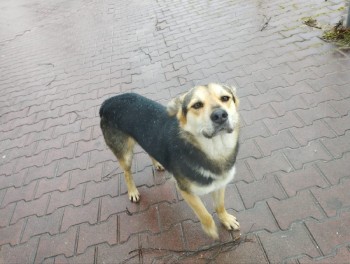 Pies średniej wielkości, kundelek maści czarnej podpalanej, prawdopodobnie w typie północniaka. Ufny wobec ludzi i zwierząt, zaczepia, ale nie jest agresywny. Zadbany, brak obroży.