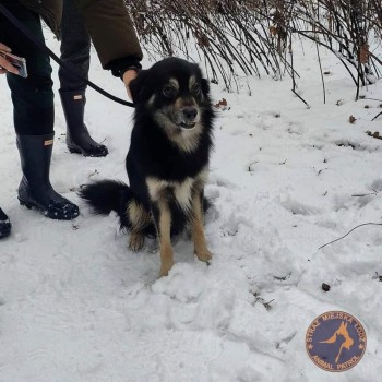 Znaleziony pies jest chyba samcem (nie sprawdzaliśmy). Piesek jest przyjazny, nie boi się ludzi i innych psów, akceptuje głaskanie. Zadbany, wystawia ciągle język (zapewne przez wadę zgryzu lub brak przednich zębów). Wystają mu przednie zęby. Brak chipa i obroży. Umaszczenie czarne z jasnymi (kremowymi) plamami na pyszczku, brzuchu, ogonie i łapach. Sierść długa. Ogon długi, włochaty. Dość mały (wzrost, do kolan).