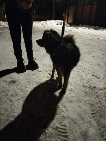 Średniej wielkości kundelek. Czarny z brązowym. Odwieziony do schroniska w Chorzowie.