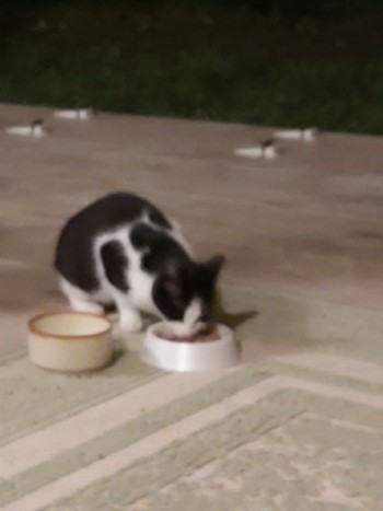 Kot bardzo płochliwy, nieufny. Drobny, raczej młody. Szuka jedzenia.